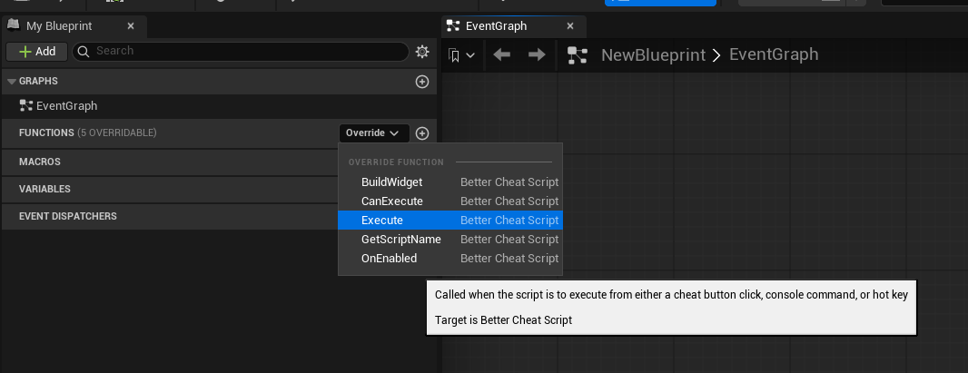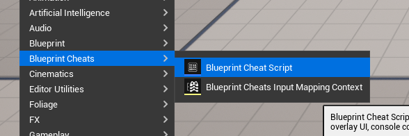 Right click in the content browser and under the Better Cheats menu, select Better Cheat Script