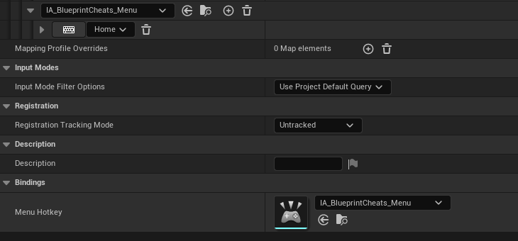 To set up hotkey bindings for Blueprint Cheats, add your Input Actions to the dedicated mapping context: Blueprint Cheats Input Mapping Context.